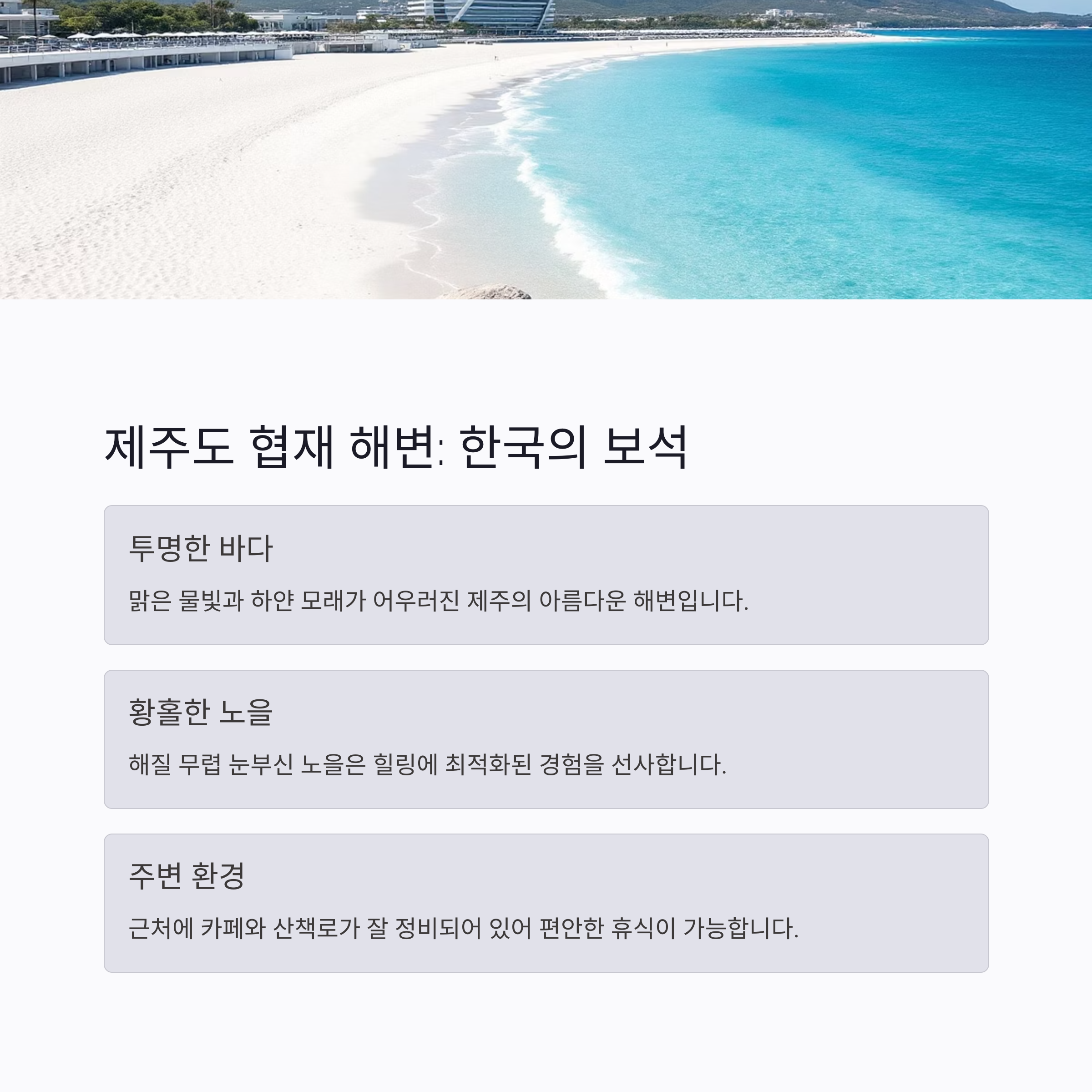 해변은 제주도의 보석 같은 장소입니다. 핵심: 제주 바다의