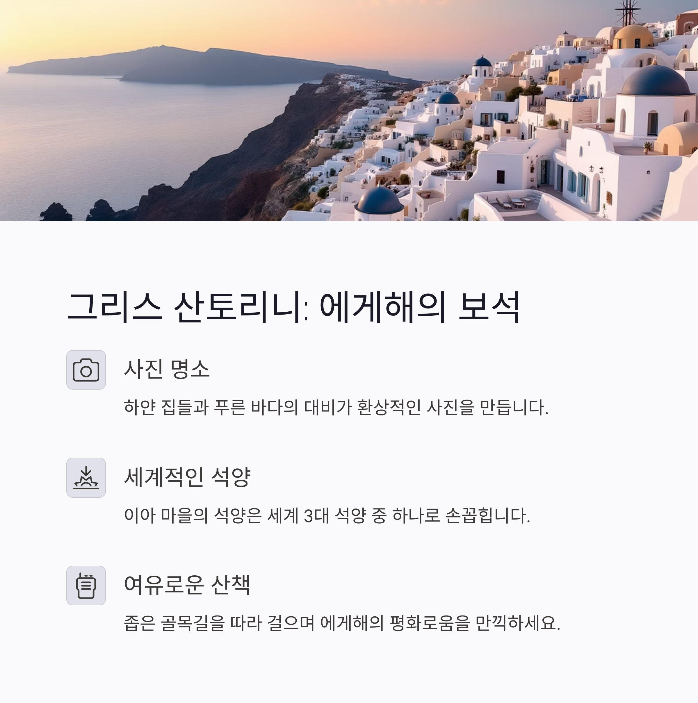 보석이라 불립니다. 특히 이아 마을의 석양은 세계 3대 석양