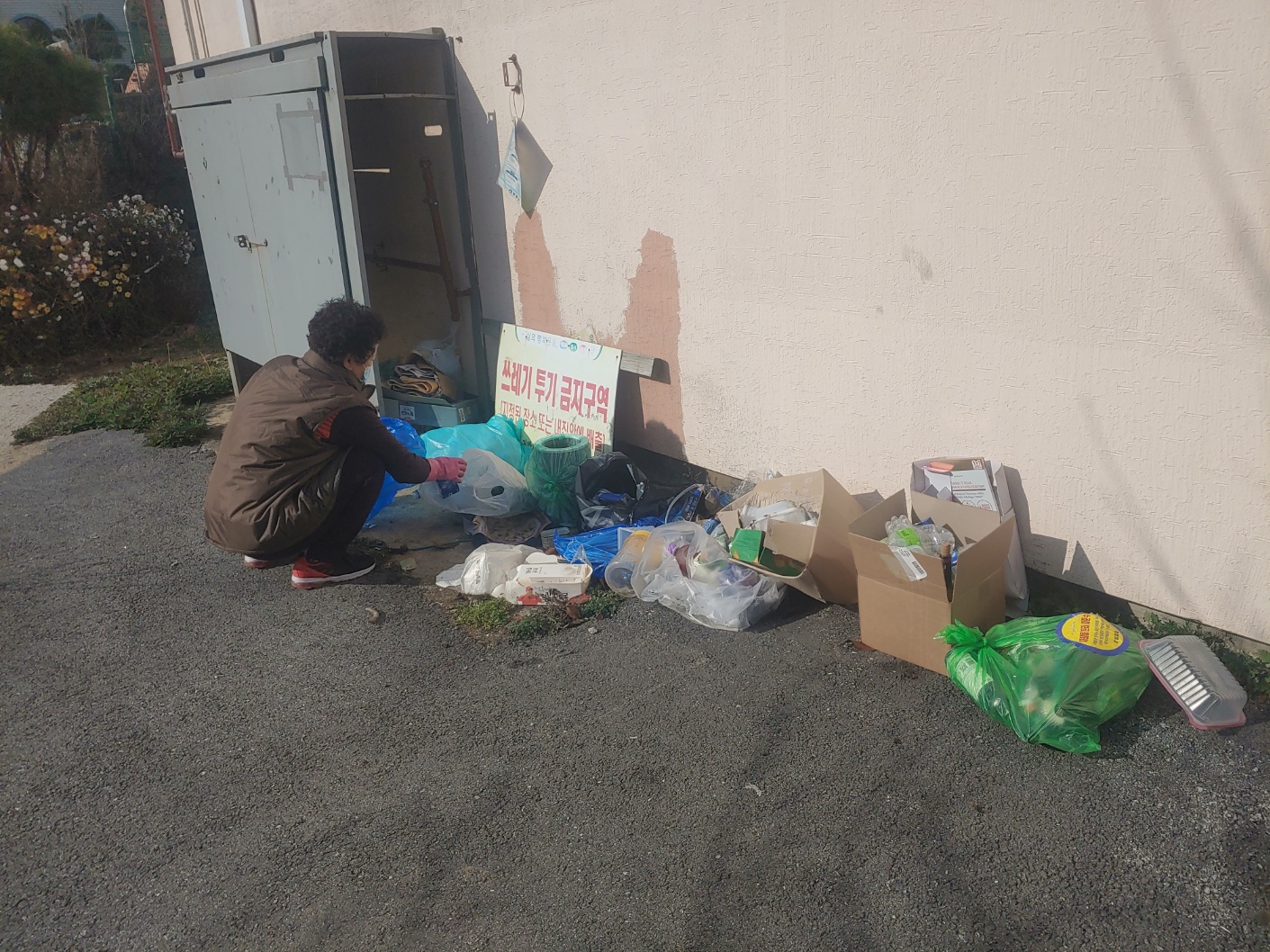 주방 뒤쪽에 있는 베란다입니다. 양평빌라 베란다에는 버리지 않고 모아둔 스티로폼 밥솥 걸레 재활용품 등이 나왔습니다. 베란다에는 쓰레기양이 많이 없어서 순식간에 정리를 마칩니다.