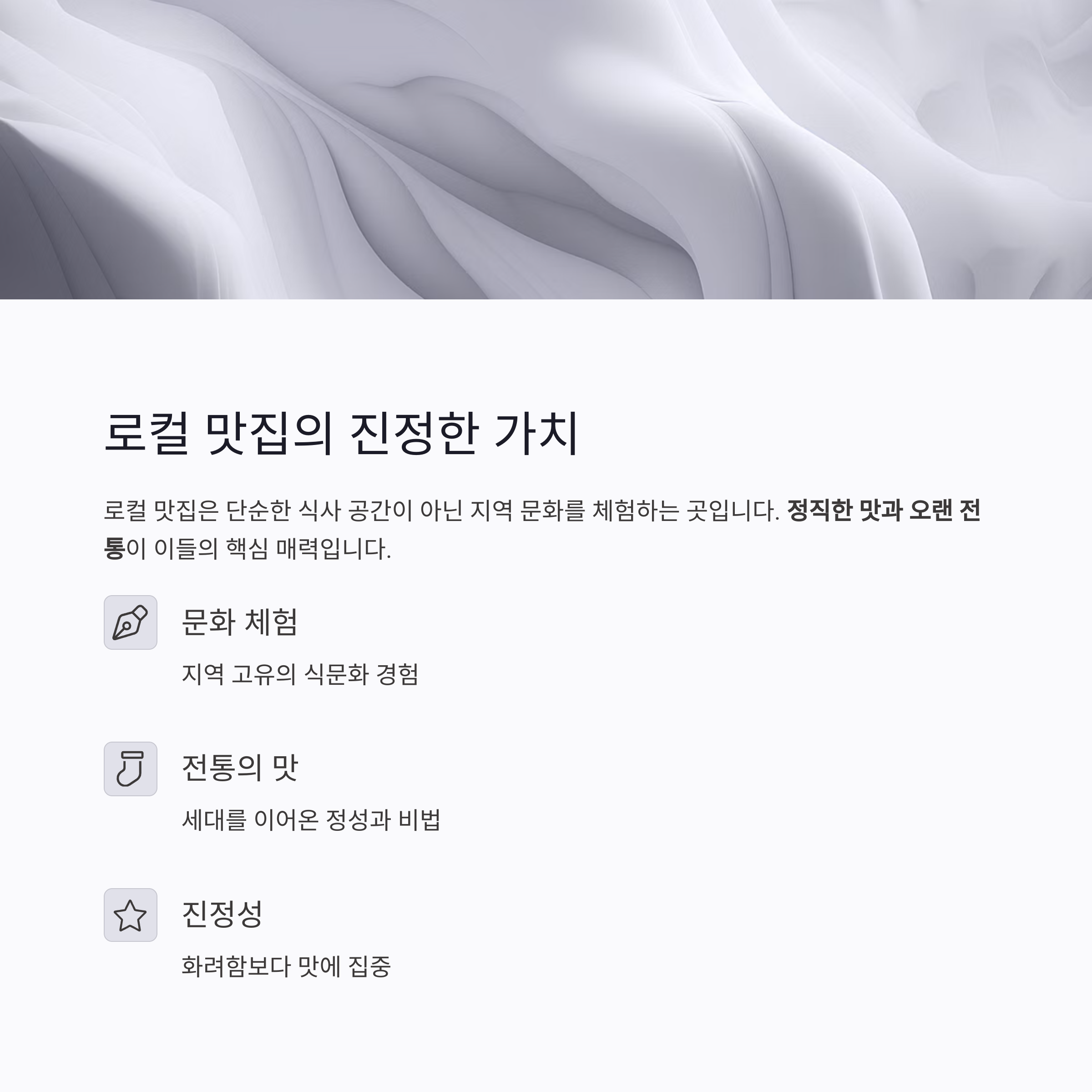 로컬 맛집은 단순한 한 끼가 아닙니다. 그 안에는 세대를 넘어