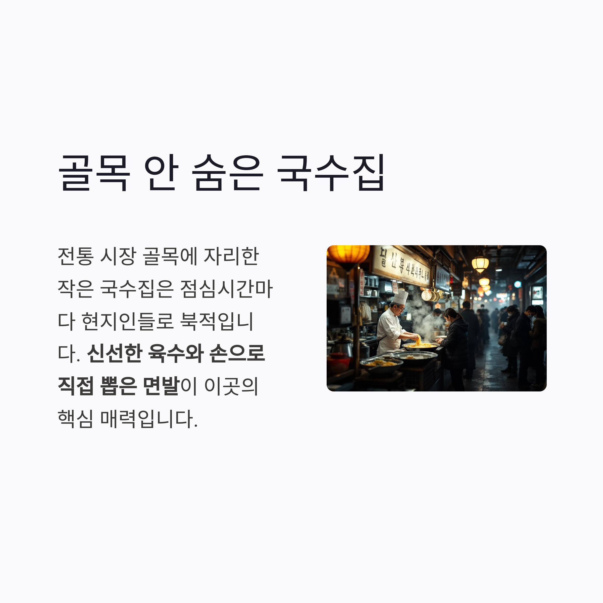 전통 시장 골목의 숨은 국숫집 이야기