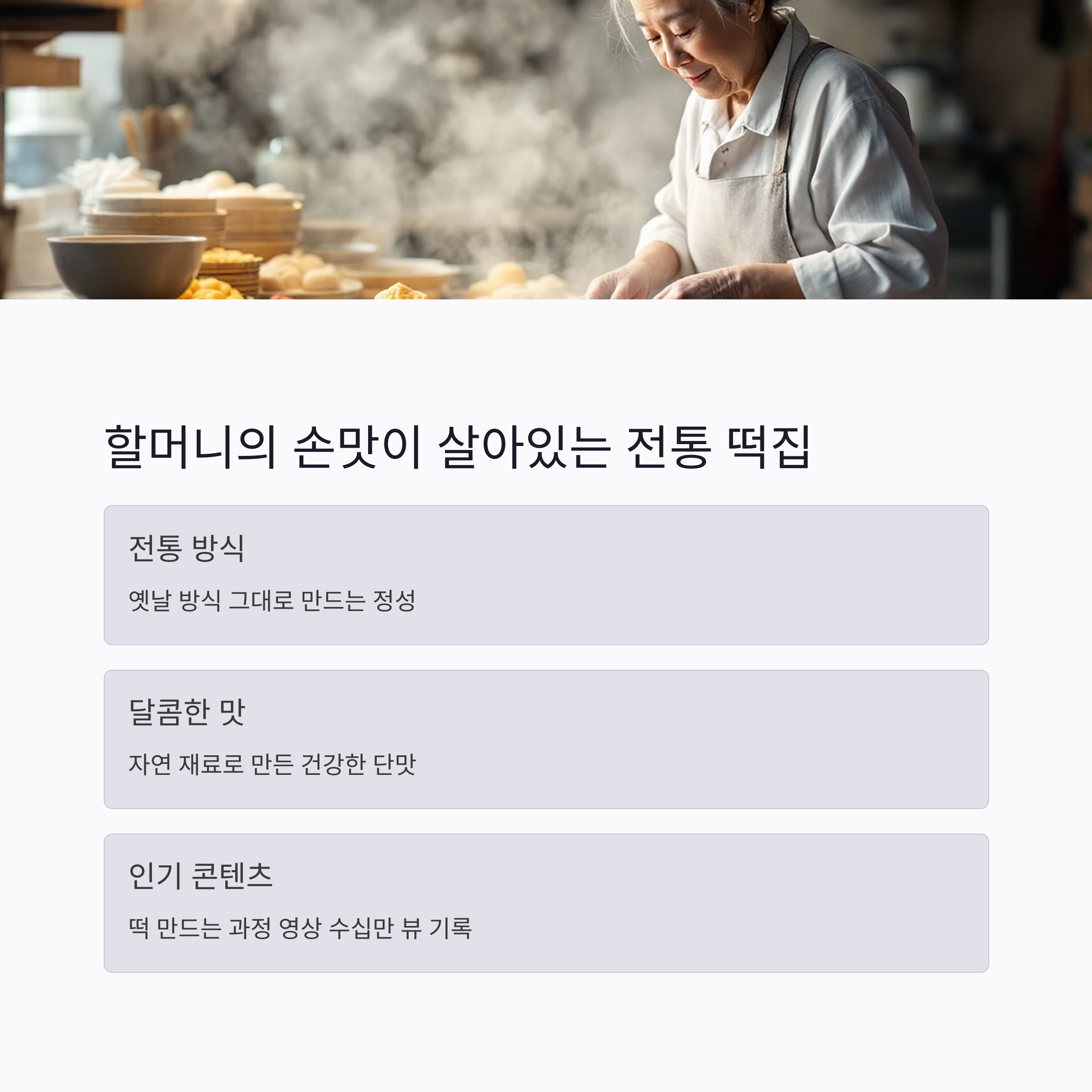 | 전통 떡집 | 수제 떡 | ★★★★☆ |