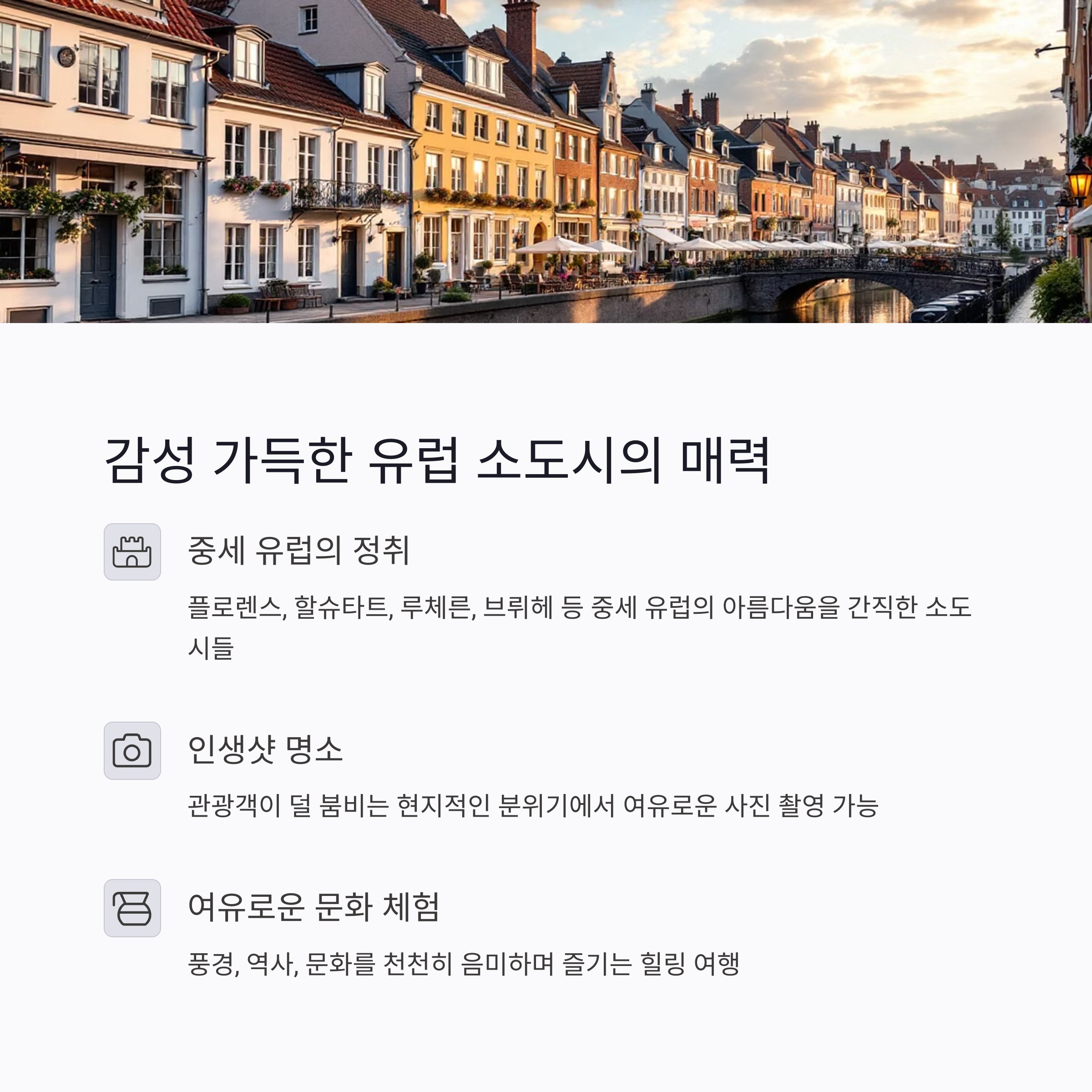감성 중심의 유럽 소도시 여행 특징
