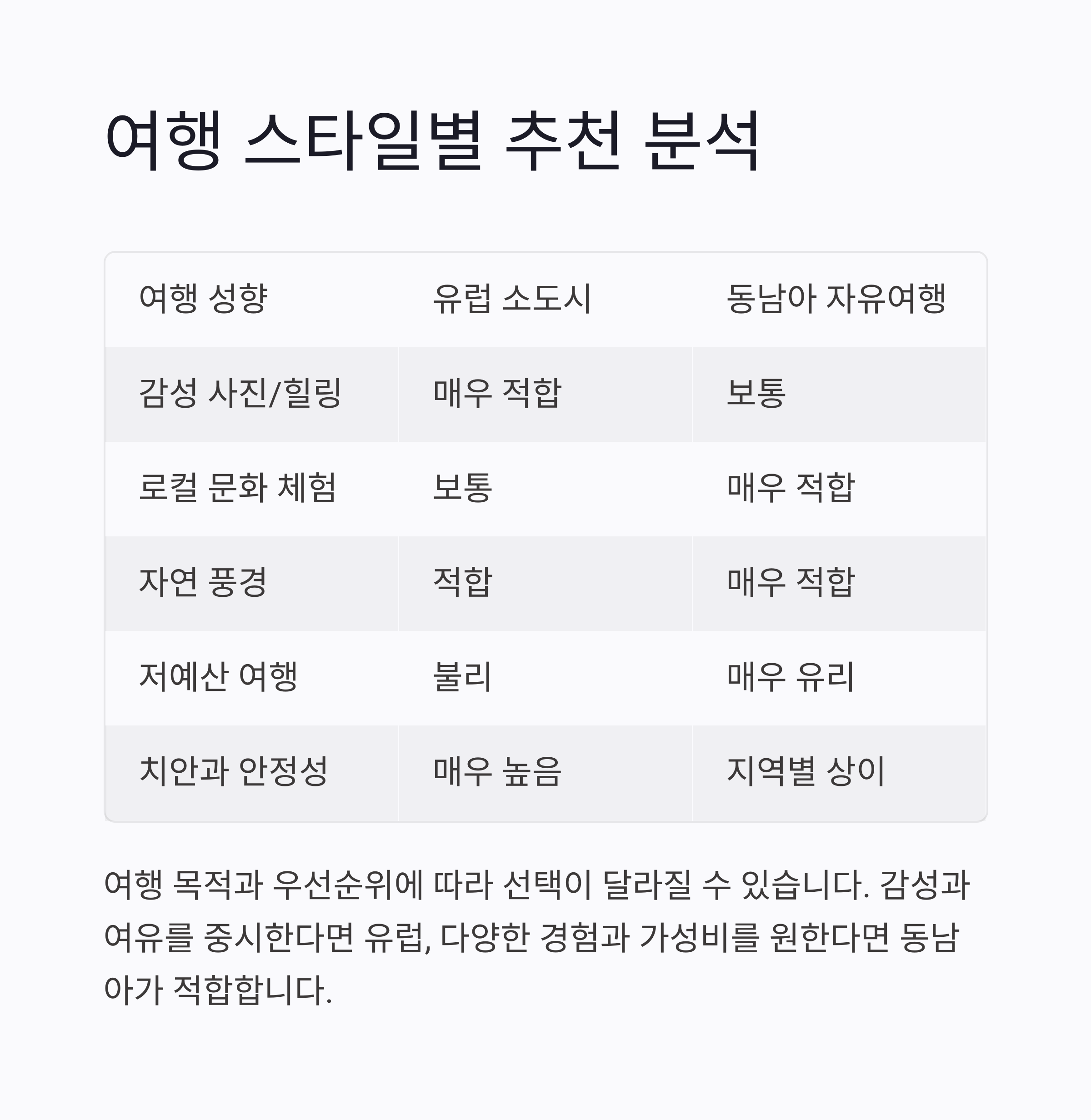 예산, 분위기, 여행 스타일별로 완벽 비교 분석해 드립니다