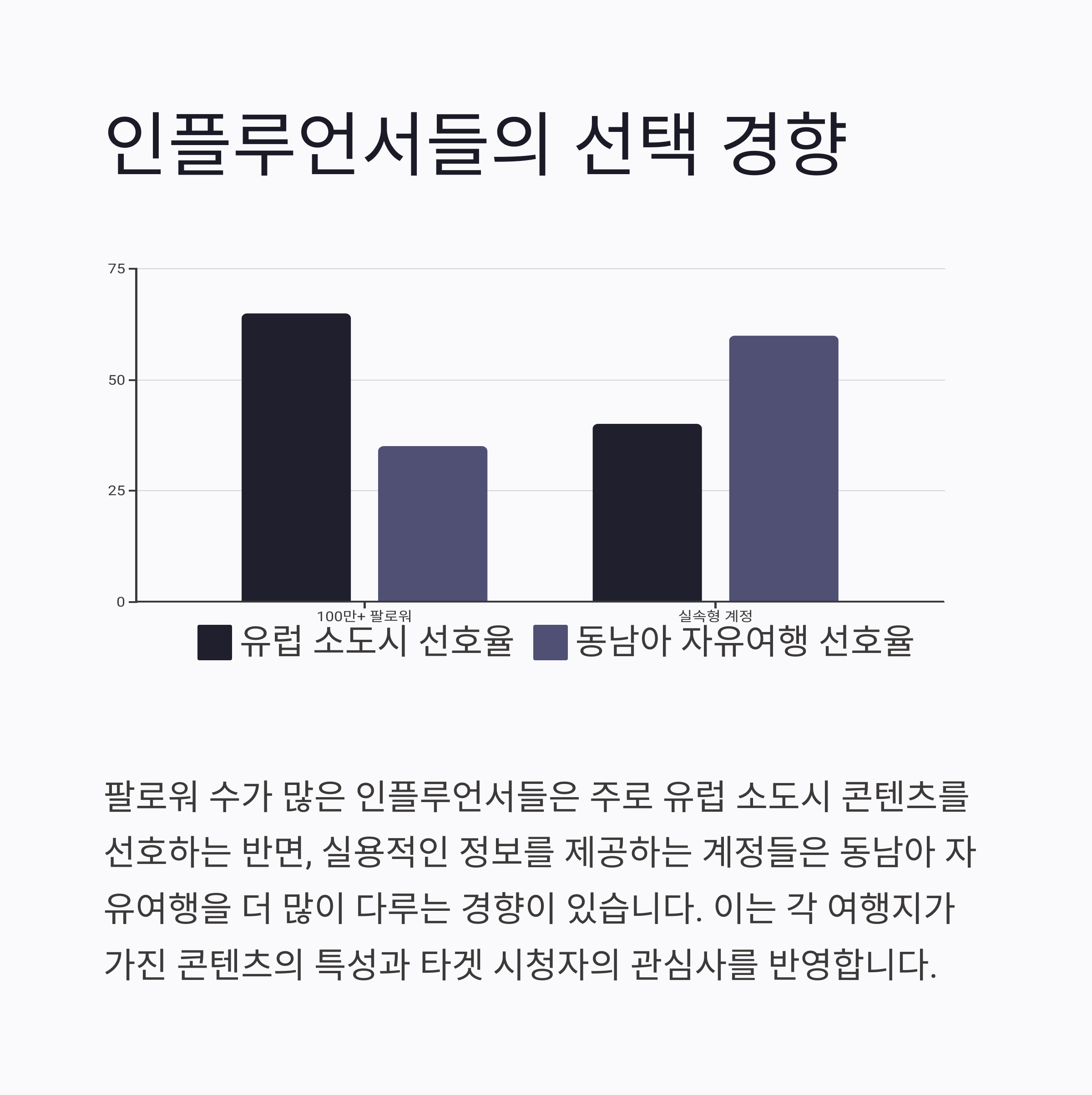 유형 유럽 소도시 선호율 동남아 자유여행 선호율