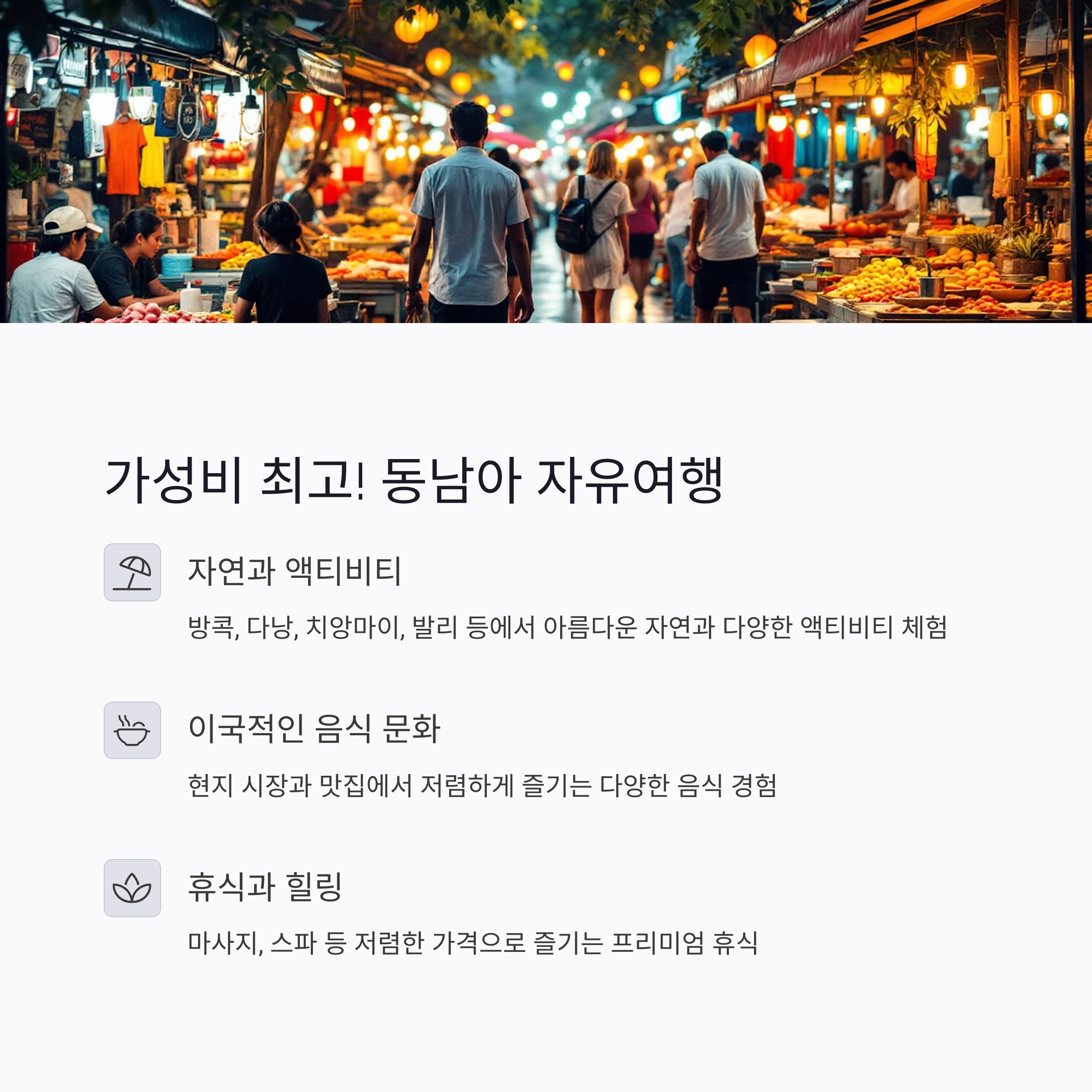 실용 중심의 계정은 동남아 자유여행을 더 많이 다뤘습니다.
