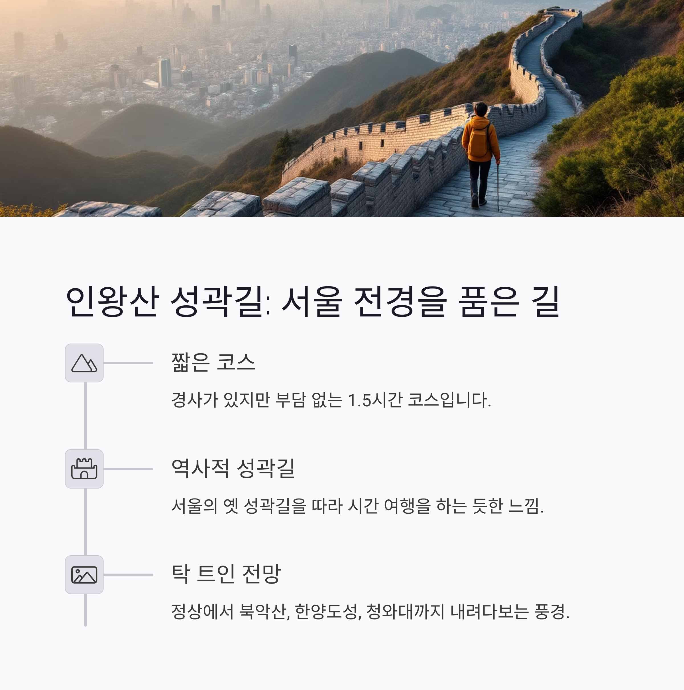| 인왕산 성곽길 | 중 | 약 1.5시간 |