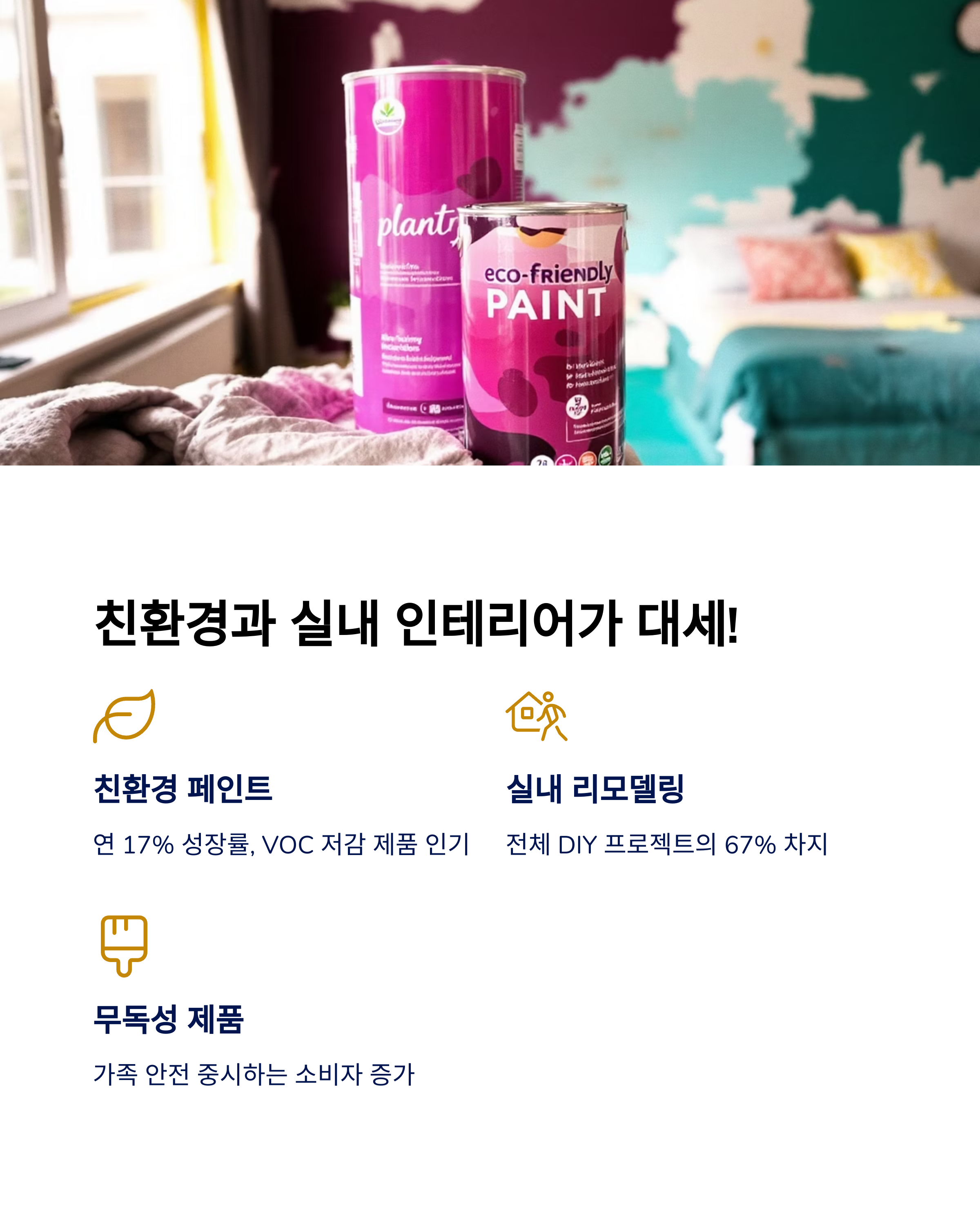 SNS 상에서는 ‘페인트 브이로그’, ‘미니멀 홈 리셋’ 등 페인트 관련 키워드가 트렌드로 부상 중이며,